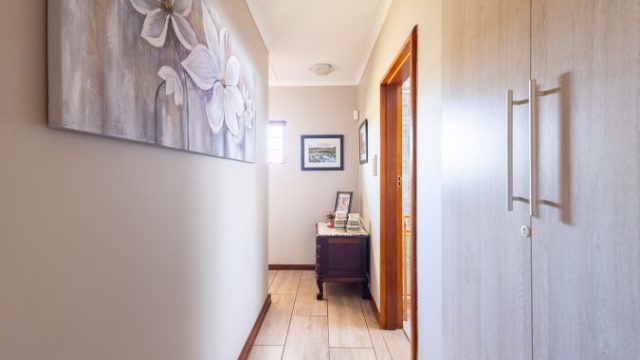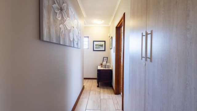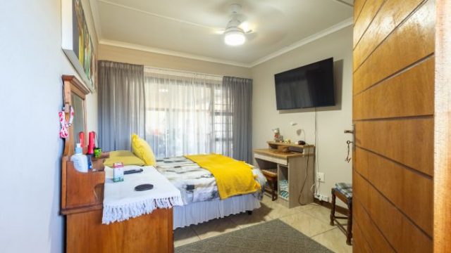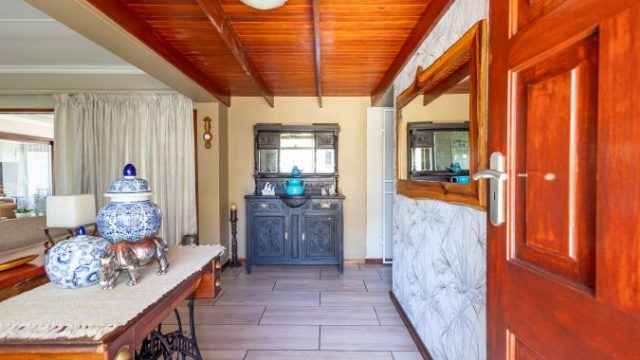 The home features versatile open-plan living areas, thoughtfully designed to create connection and flow. Sliding doors link each space harmoniously, while the expansive entertainment lounge/braai room opens onto the pool and lush garden – perfect for relaxed family living and hosting guests.