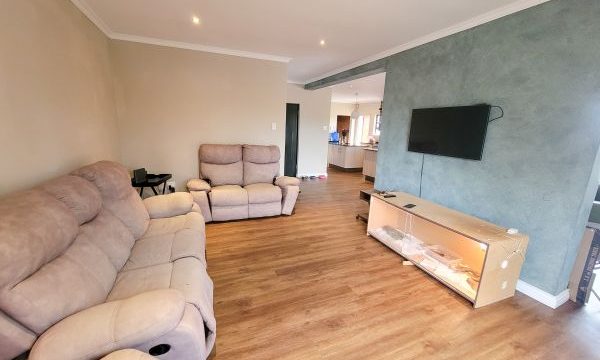 The open-plan living areas allow for a seamless flow throughout the home, with two generously sized living spaces that are perfect for both relaxing and entertaining. The stylish laminate flooring adds a touch of elegance and complements the overall modern feel of the property. For those who enjoy year-round entertaining, the indoor braai area provides the ideal setting for family gatherings and social events.