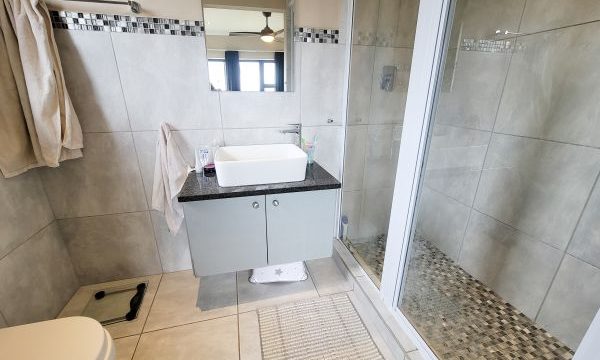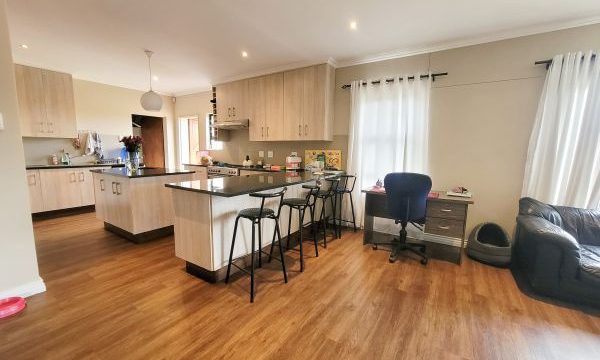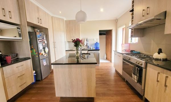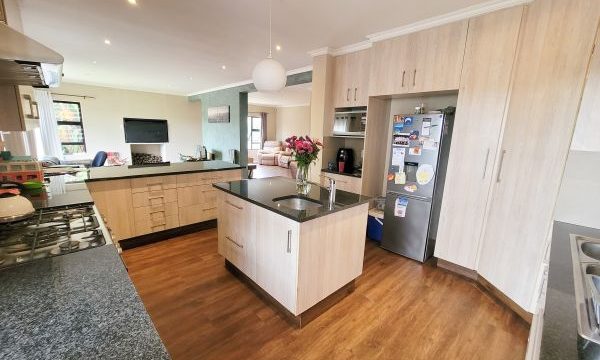 The kitchen is a chef’s dream, featuring sleek granite countertops, a gas hob and plenty of cupboard space to store all your culinary essentials. The home also offers practical features such as a solar geyser, ensuring energy efficiency while reducing your environmental footprint.