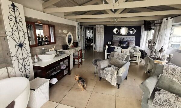 The main home has 5 bedrooms, all with en-suite bathrooms and the most beautiful uninterrupted sea views and green hills. Another 3 bedroom home is currently being rented out, and it doesn’t stop there – another 2×2 bedroom flats have tenants PLUS a small 1 bedroom flat. The combined rental income is R25 000 per month. All the flats have their own entrance and are totally separate from the house.