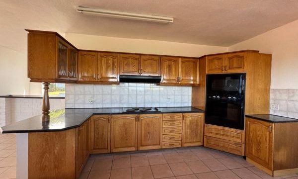 The heart of the home is a beautifully appointed kitchen with granite countertops, a pantry, and abundant built-in cupboards, seamlessly flowing into a generously sized open-plan living area, ideal as a formal lounge or sophisticated dining space.