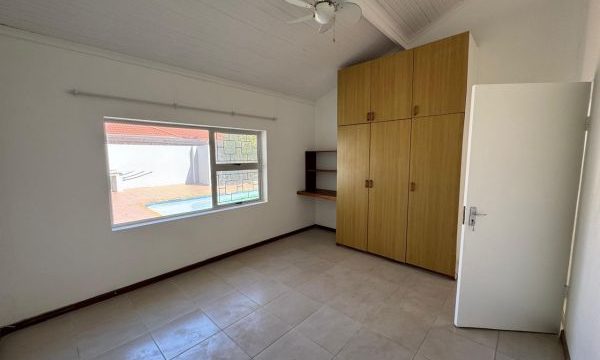 Outside, a sparkling swimming pool awaits alongside a built-in braai area, perfect for relaxed weekend entertaining. The generous yard space ensures room for pets, play, or simply enjoying the sea breeze.