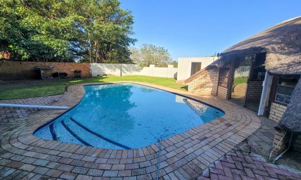 Step outside to an inviting undercover braai area overlooking a sparkling swimming pool and beautifully maintained garden—perfect for hosting guests all year round.
