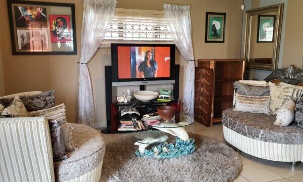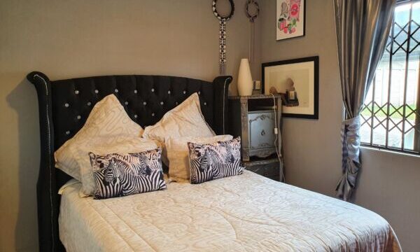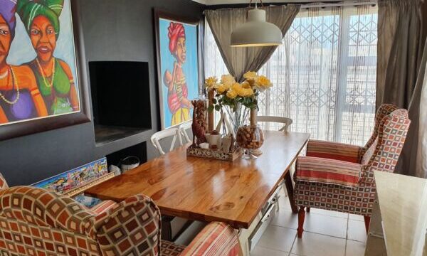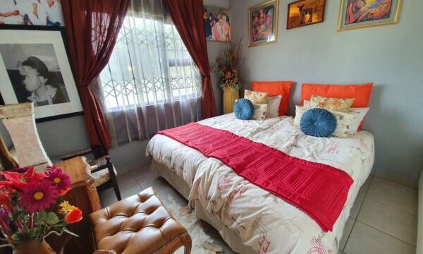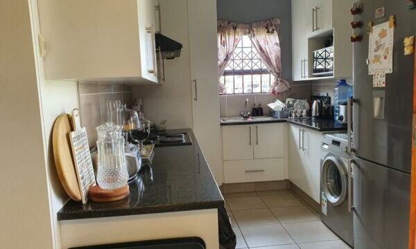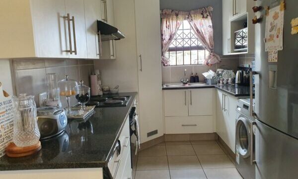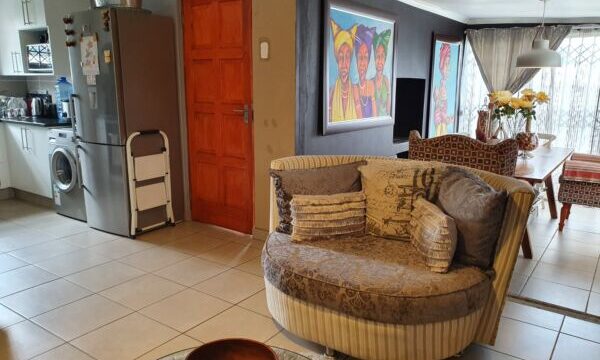 This open plan townhouse also offers a modern kitchen, braai room, modern bathroom, double carport, solar geyser and spacious enclosed yard. All this in a secure complex with access control.