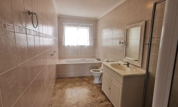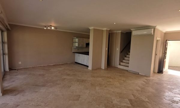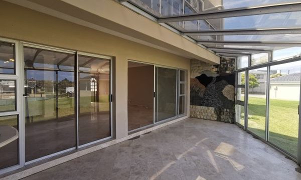Enter this lovely home through the double french doors and you will immediately notice the enormous open plan lounge dining room beautifully tiled throughout. From here you can go through the sliding door to the private and enclosed patio just perfect for those days that the weather is not ideal. The kitchen is fitted with granite tops, beautiful tiles, built in oven and hob and just off the kitchen a large scullery.