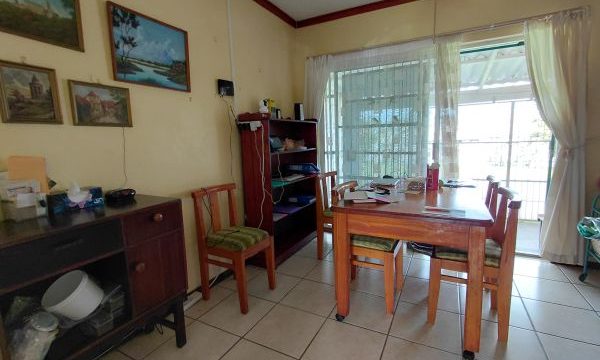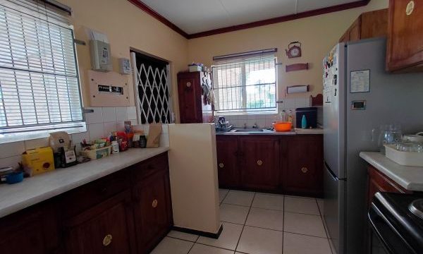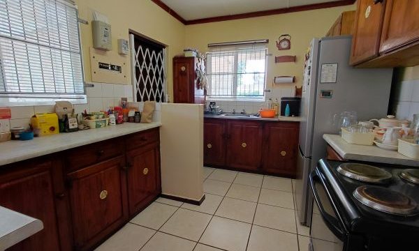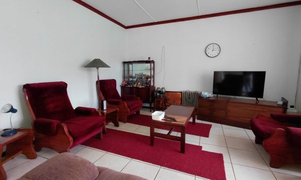 Step inside to find a spacious lounge, dining room, and a functional kitchen fitted with solid pine cupboards, offering ample storage space. The home features three well-sized bedrooms, all with built-in cupboards, along with a full family bathroom and an en-suite to the main bedroom.