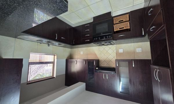 The home is fully tiled throughout and features a modern kitchen. An automated double garage provides secure parking, while the open braai area and lapa make it ideal for entertaining.